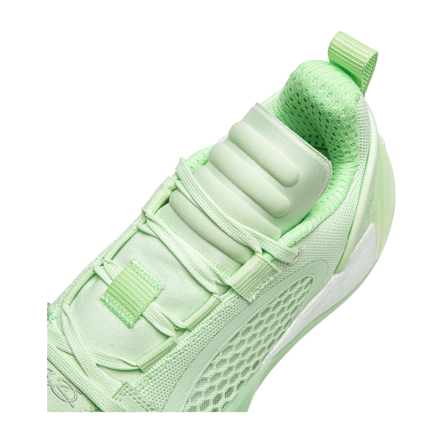 Eye-catching hemispherical heel TPU patterned in Wade brand logo, showcasing the faith of creating new legends, suitable for on-court performance.